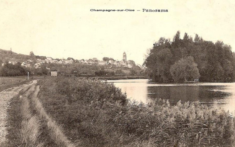 Le voyageur qui longe la rive droite de l'Oise est immanquablement surpris par l'élégant clocher dont les deux étages ajourés semblent veiller sur les toits de Champagne-sur-Oise depuis le XIIe siècle, et qui allie à cette grâce le record de la hauteur dans le Val-d'Oise, du haut de ses trente-cinq mètres.
